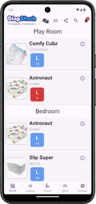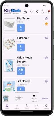 „DiapStash" yra patogi programa, skirta efektyviam vystyklų atsargų valdymui. Stebėkite savo vystyklų inventorių ir visus keitimus. Duomenis galima sinchronizuoti keliuose įrenginiuose. Puikiai tinka nelaikantiems šlapimo ir ABDL vartotojams.