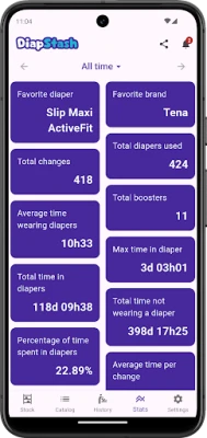 Su šiuo patogiu įrankiu, sauskelnių atsargų valdymas tampa itin paprastas ir tikslus. Jums nebereikės jaudintis dėl netikėtai išsekusių atsargų – programa preciziškai seka kiekvienos sauskelnės būklę, padėdama planuoti pirkimus iš anksto ir išvengti nemalonių situacijų. Be to, tikslus kiekvieno keitimo žymėjimas užtikrina išsamią istoriją, leidžiančią stebėti ir analizuoti naudojimo tendencijas. Tai ne tik padeda palaikyti optimalią higieną ir patogumą, bet ir suteikia vertingų įžvalgų efektyvesniam resursų paskirstymui.