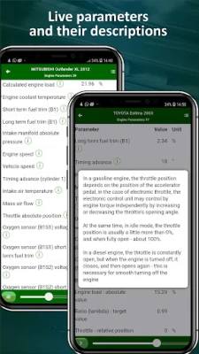 MOTORDATA OBD žymiai praplečia standartinio OBD2 skaitytuvo funkcijas, virsdama išsamiu automobilio sveikatos monitoriumi. Programėlė ne tik dešifruoja gedimų kodus (DTC P0 ir P2 OBD2), bet ir pateikia išsamią informaciją apie dažniausių gedimų priežastis bei leidžia lengvai išjungti „Check Engine" indikatorių. Stebėkite realiojo laiko duomenis iš variklio ir kitų sistemų, tokius kaip greitis, apsukos, temperatūra, slėgis, deguonies jutiklių rodmenys, degalų korekcijos ir variklio sukimo momentas. Be to, mėgaukitės pritaikomu prietaisų skydeliu su 18 šablonų, reguliuodami šriftų dydžius, rodymo tipus ir spalvas pagal savo poreikius, bei išnaudokite duomenų registravimo funkciją, leidžiančią įrašyti ir atkurti jutiklių rodmenis, gedimų kodus ir „freeze-frame" duomenis analizei neprisijungus.
