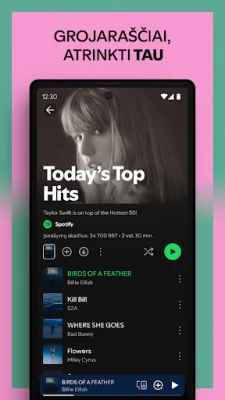 Norint patirti dar daugiau, „Spotify Premium" siūlo išskirtines galimybes. Pamirškite reklamas ir mėgaukitės nepertraukiamu klausymu bet kur ir bet kada, net ir be interneto ryšio, atsisiuntę mėgstamą turinį. Patirkite aukščiausios kokybės garsą ir pasinerkite į dar tikslesnes, suasmenintas rekomendacijas, kurios nuolat nustebins naujais atradimais. O su „WearOS" integracija, mėgstamos melodijos ir tinklalaidės bus dar lengviau pasiekiamos tiesiai nuo riešo: valdykite atkūrimą, klausykitės be telefono ir greitai pasiekite „Spotify" funkcionalumą dar niekada nebuvo taip patogu.