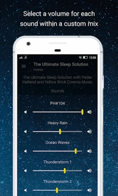Atsisveikinkite su nemiga ir atraskite ramybę! Mėgaukitės aukščiausios kokybės HD gamtos garsais, baltojo triukšmo takeliais ir ramia muzika, padėsiančia atsipalaiduoti. Pasiekite gilų miegą, sumažinkite stresą ir pabuskite pailsėję bei žvalūs.